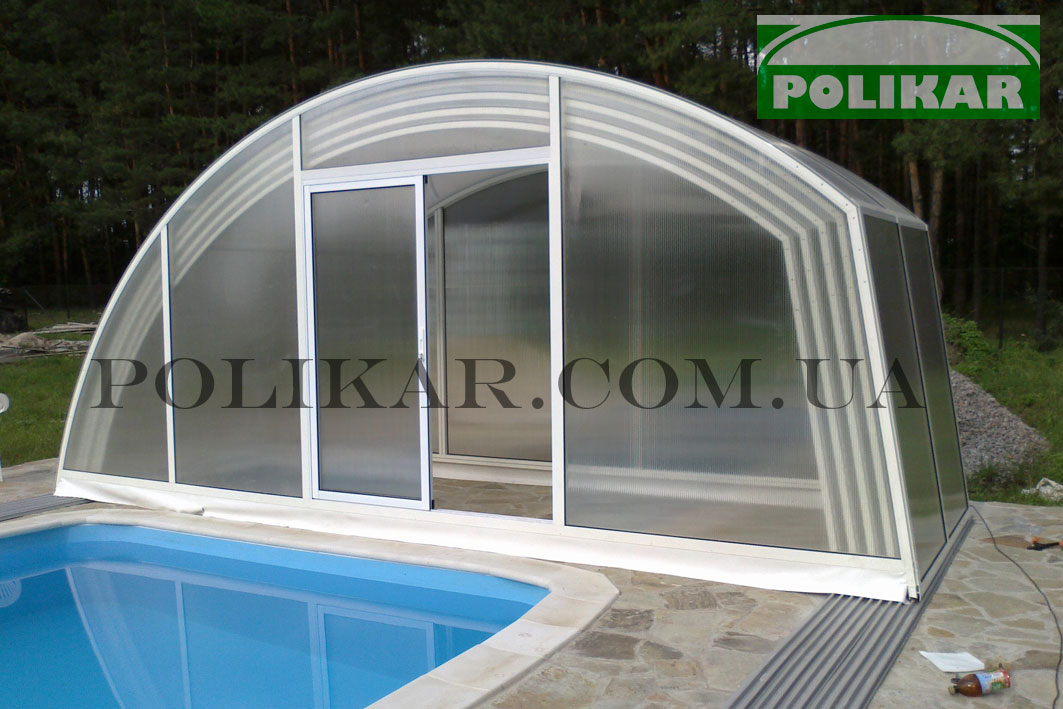 - Обеспечивается безопасность Ваших детей и домашних питомцев, то и дело норовящих упасть в открытый бассейн, экономия химии для бассейнов, защита от УФ-лучей и солнечных ожогов, щадящий режим работы оборудования, а также достоинства закрытого бассейна (их обеспечивает стационарный павильон, под сводами которого можно ходить в полный рост, располагать столики, шезлонги, цветы).